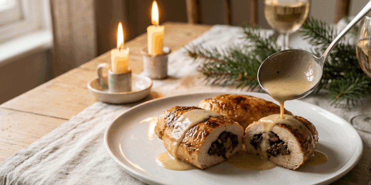Suprêmes de volaille farcis aux marrons & morilles, sauce crémée au vin blanc — recette de fête Tendre, parfumée et résolument festive, cette recette de suprêmes de volaille farcis aux marrons et morilles revisite l’esprit de la dinde de Noël avec une présentation raffinée. La farce gourmande, les notes boisées des morilles et la sauce […]