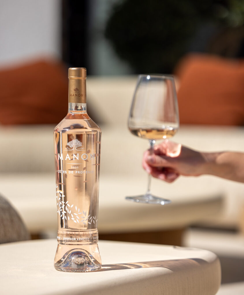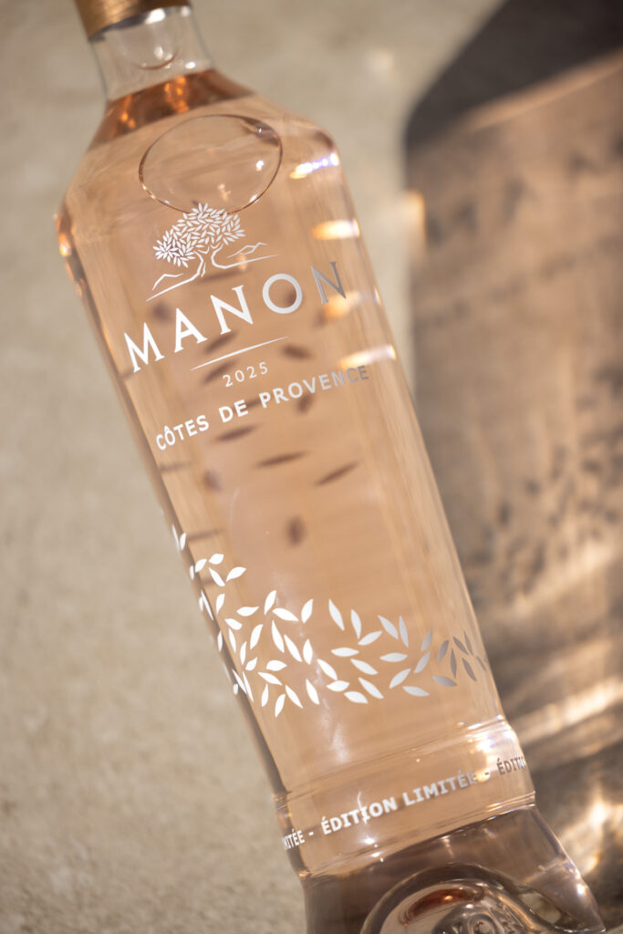 Pour le printemps / été 2026, Manon dévoile une nouvelle édition limitée à la signature graphique inédite. Sa bouteille iconique se pare d’une sérigraphie blanche délicate, où des feuilles d’olivier viennent enlacer l’écrin avec finesse. Ce motif végétal, à la fois identitaire et intemporel, semble se déposer naturellement sur le verre, jouant avec la transparence du vin pour révéler toute la subtilité de sa teinte.