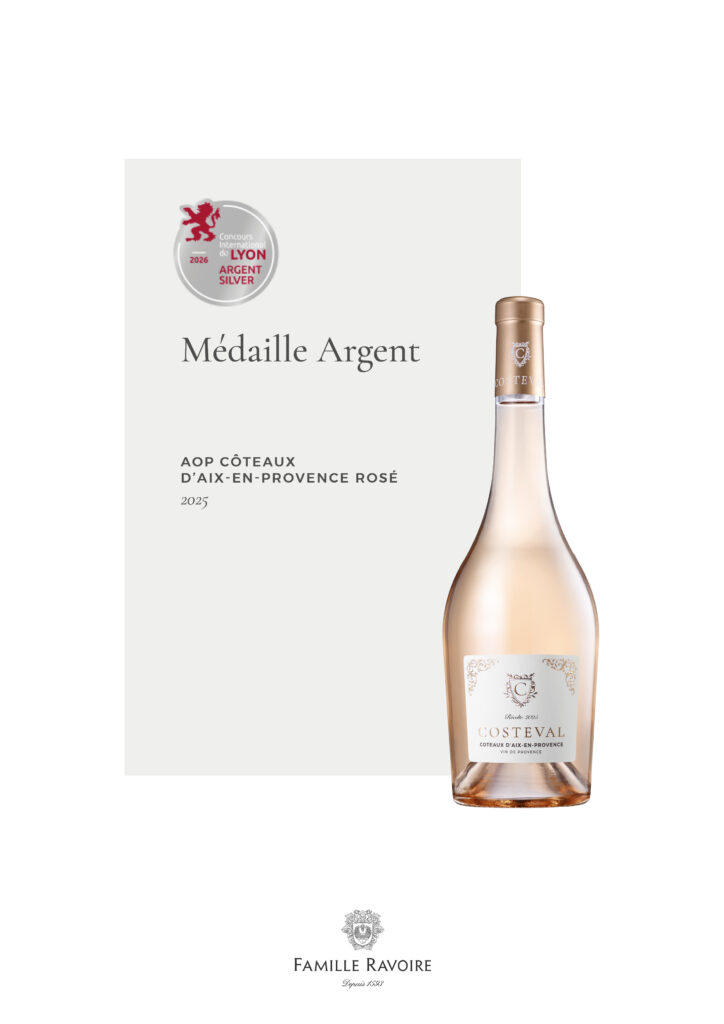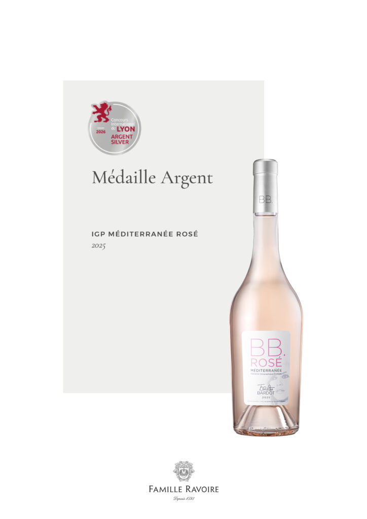 Revues de Presse Récompenses – Concours international de Lyon 2026 23 mars 2026 By Amandine FLEUROT Nos cuvées ont été distinguées lors du Concours International de Lyon 2026 :Perle d’Azur – IGP Méditerranée Rosé 2025 : Médaille d’OrMaison Ravoire – AOP Châteauneuf-du-Pape Rouge 2023 : Médaille d’OrMaison Ravoire – AOP Côtes du Rhône Villages Plan de Dieu Rouge 2025 : Médaille d’ArgentBrigitte Bardot – IGP Méditerranée Rosé 2025 : Médaille d’ArgentCosteval – AOP Coteaux d’Aix-en-Provence Rosé 2025 : Médaille d’ArgentUne belle reconnaissance pour ces cuvées, qui illustrent la richesse de leurs terroirs entre la Vallée du Rhône et la Provence, ainsi que l’exigence de notre savoir-faire. L’abus d’alcool est dangereux pour la santé, à consommer avec modération. awardsConcours International de LyonFamille Ravoirevin share