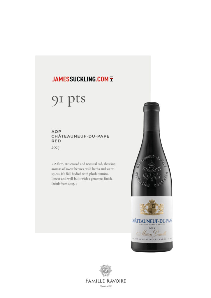 Revues de Presse Récompenses – James Suckling 30 décembre 2025 By Amandine FLEUROT Notre cuvée Maison des Songes de Camille – AOP Châteauneuf-du-Pape Rouge 2023 a été distinguée par James Suckling avec une note de 91 points.Une belle reconnaissance pour ce Châteauneuf-du-Pape rouge 2023, qui illustre la richesse de son terroir du Rhône Sud et l’exigence de notre savoir-faire. L’abus d’alcool est dangereux pour la santé, à consommer avec modération. awardsjames sucklingvin share